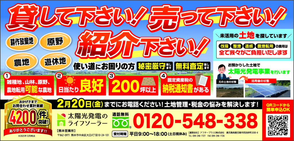 みやま市・大川市・八女市エリアにて土地募集広告を掲載しました