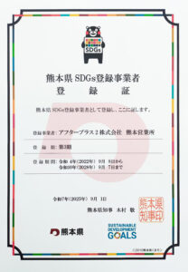 これまでに「鹿児島県SDGs登録事業者」「かごしまSDGs推進パートナー」「熊本県SDGs登録事業者」へ登録し、SDGs達成を目指すとともに、活動を通じてよりよい社会と未来の構築と貢献に尽力しています。